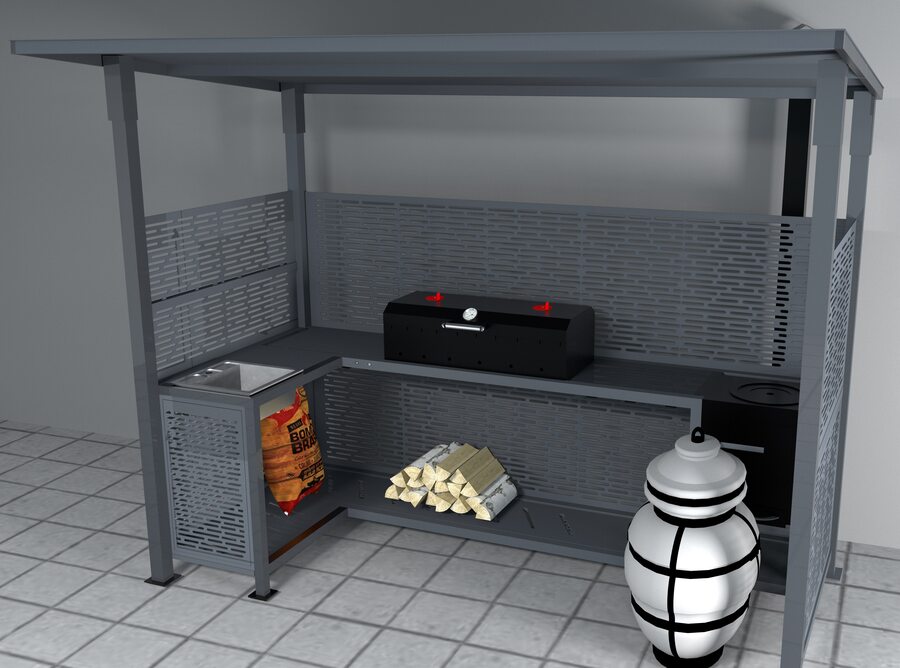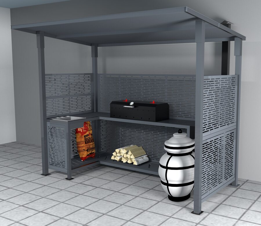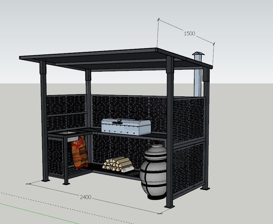 | Комплектация: | Каркас с крышей, мангал, печка, дымоход, совок, кочерга и подвес для казана |